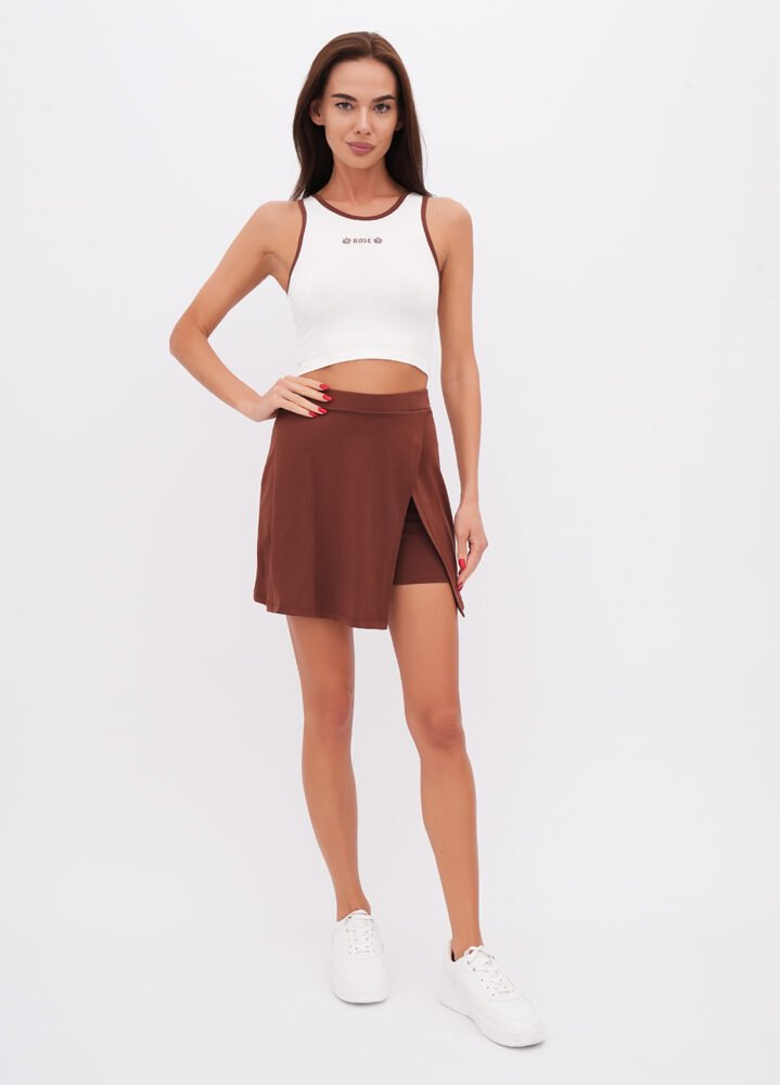 Сучасний та зручний жіночий комплект для активного відпочинку, спорту або домашнього носіння. Складається з топу та шортів зі спідничною накладкою — поєднання стилю, комфорту і легкості.