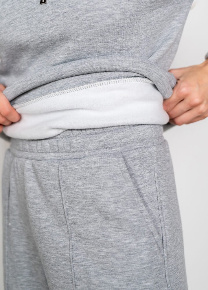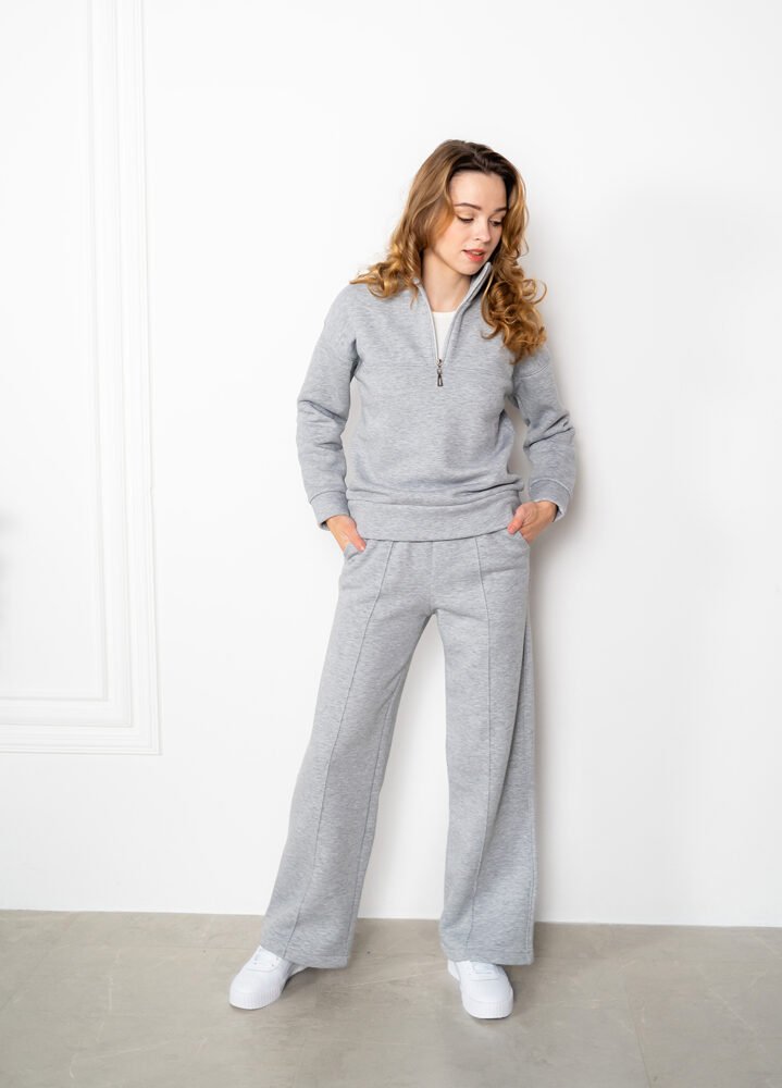Костюм складається з кофти та штанів – ідеальний дует для тих, хто хоче виглядати стильно навіть у той момент, коли виходить виносити сміття. Матеріал? 75% бавовна для затишку і 25% еластану для того, щоб можна було сісти в позу лотоса, якщо раптом вирішите медитувати на морозі.
