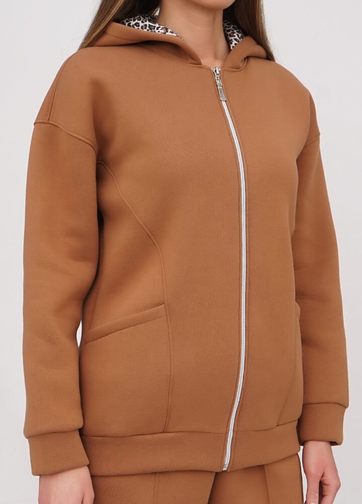Базовий комплект із кофти та штанів. Штани з еластичним поясом забезпечують зручну посадку. Модель підходить для щоденного носіння, прогулянок та активного відпочинку. Тканина щільна, приємна до тіла, добре тримає форму.