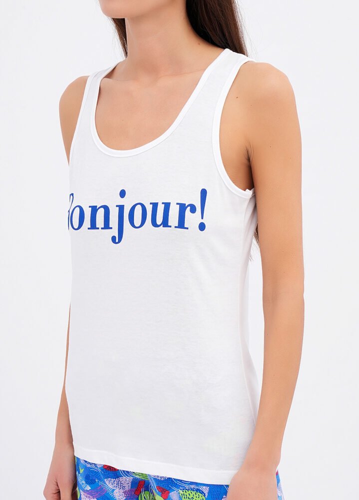 Ця піжама — ідеальний варіант для літніх ночей та затишних ранків. Стильна майка-боксерка з написом та яскраві шорти створюють настрій із першого погляду. Пошита з м’якої та приємної до тіла бавовни з додаванням еластану — тканина тягнеться, дихає та не сковує рухів.
