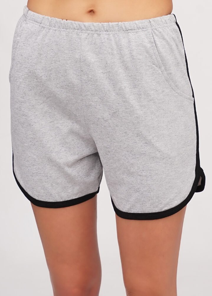 Шорти: Короткі, без кишень, з контрастними облямівками по краях.