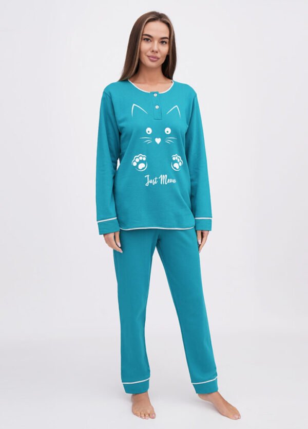 Ця піжама — ідеальний вибір для тих, хто цінує поєднання комфорту, яскравого стилю та грайливих деталей у повсякденному домашньому гардеробі.