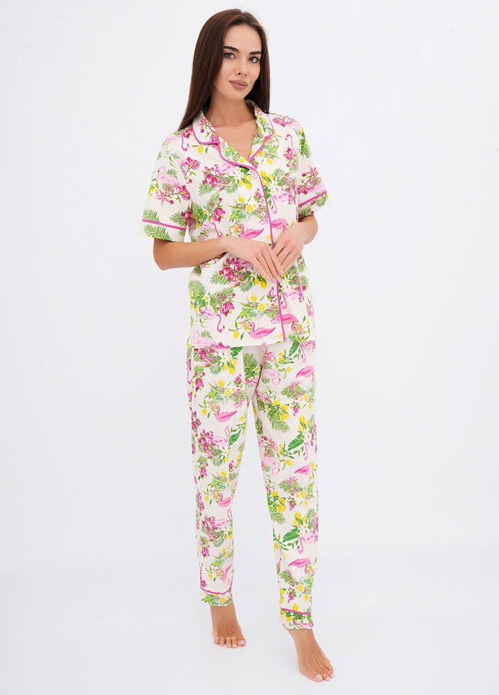 Піжама жіноча Бавовна 95% Еластан 5% 010134131_вершковий фламінго LUCCI. Україна