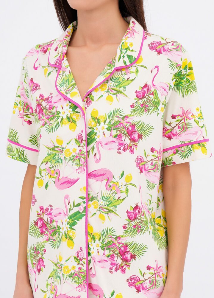 • Яскравий тропічний принт з фламінго та квітами — виглядає стильно та свіжо.