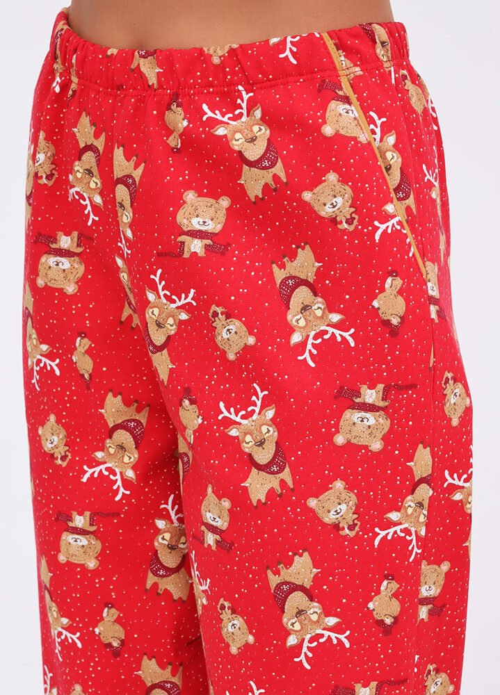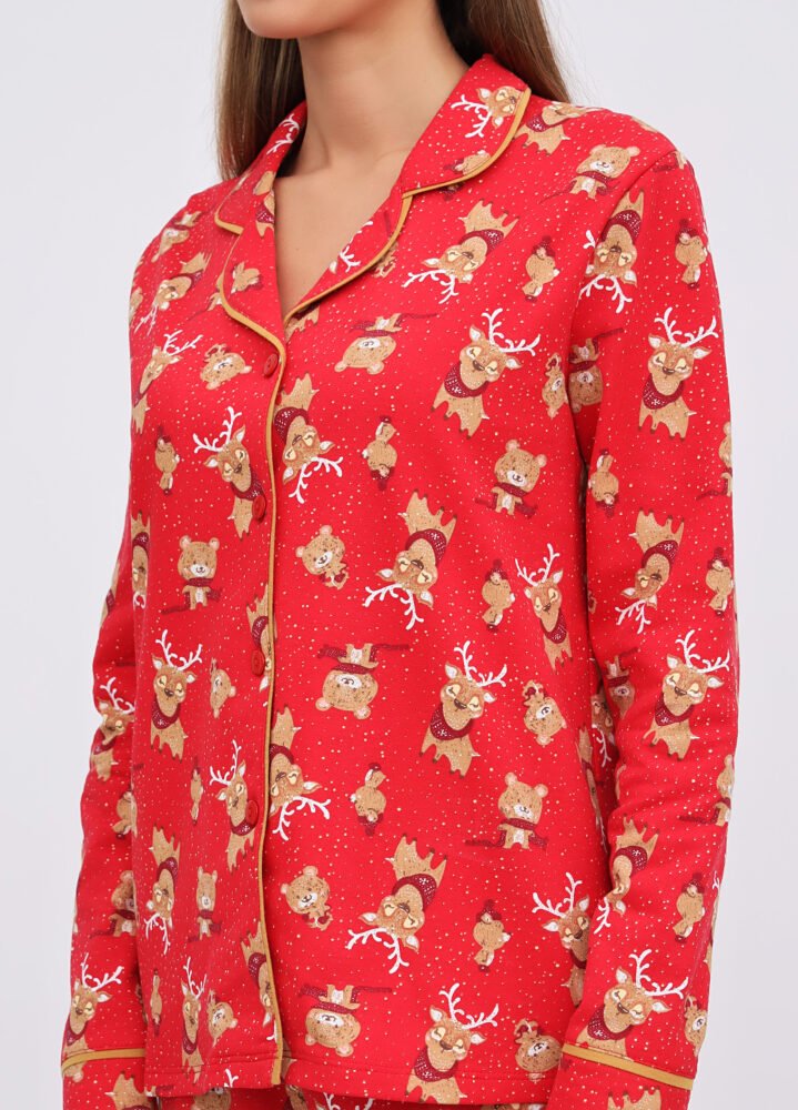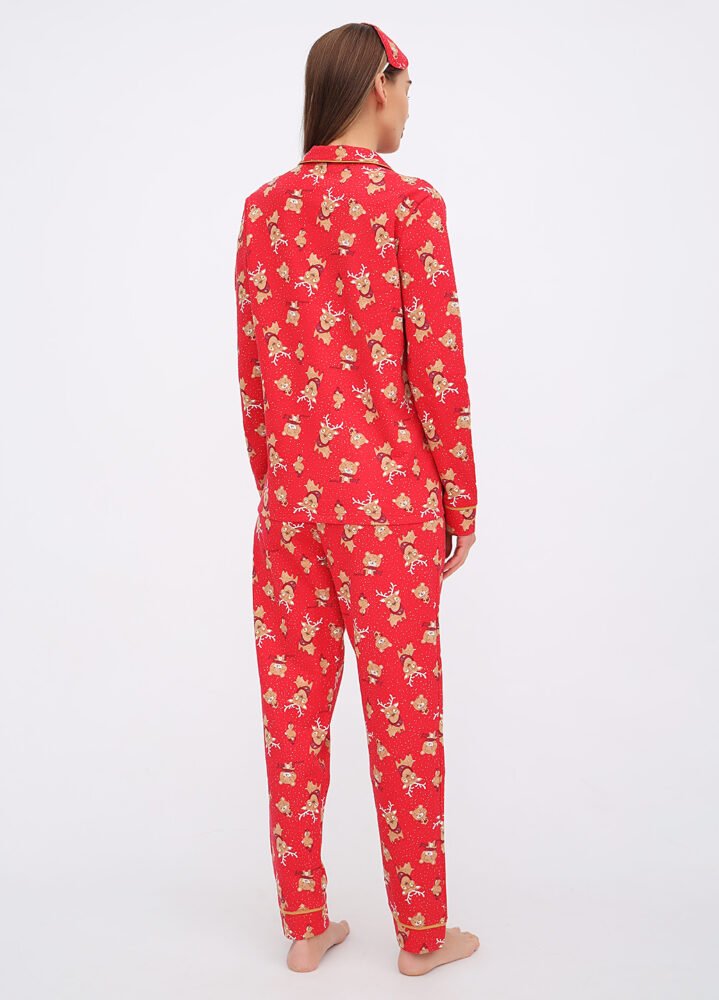 Ця жіноча піжама — справжній затишний скарб! Виготовлена з 100% бавовни з начосом всередині, вона огортає теплом та ніжністю, як обійми улюбленого пледа. Яскравий принт робить її не лише зручною, але й стильною — ви готові до модного дефіле навіть у ліжку!