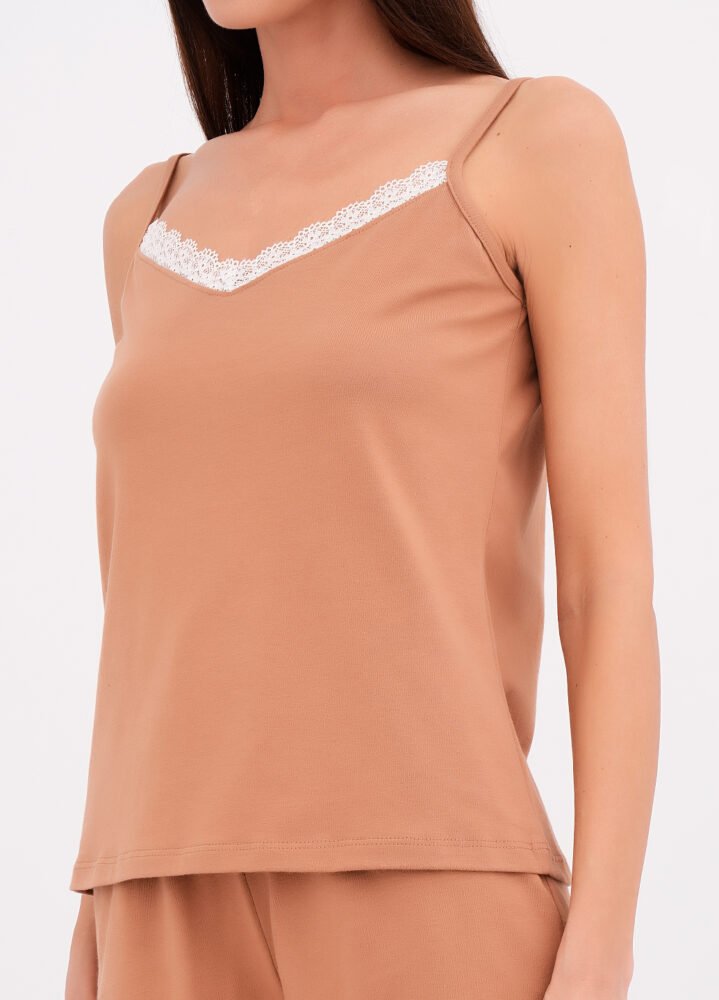 Топ із тонкими бретелями — підкреслює витонченість силуету