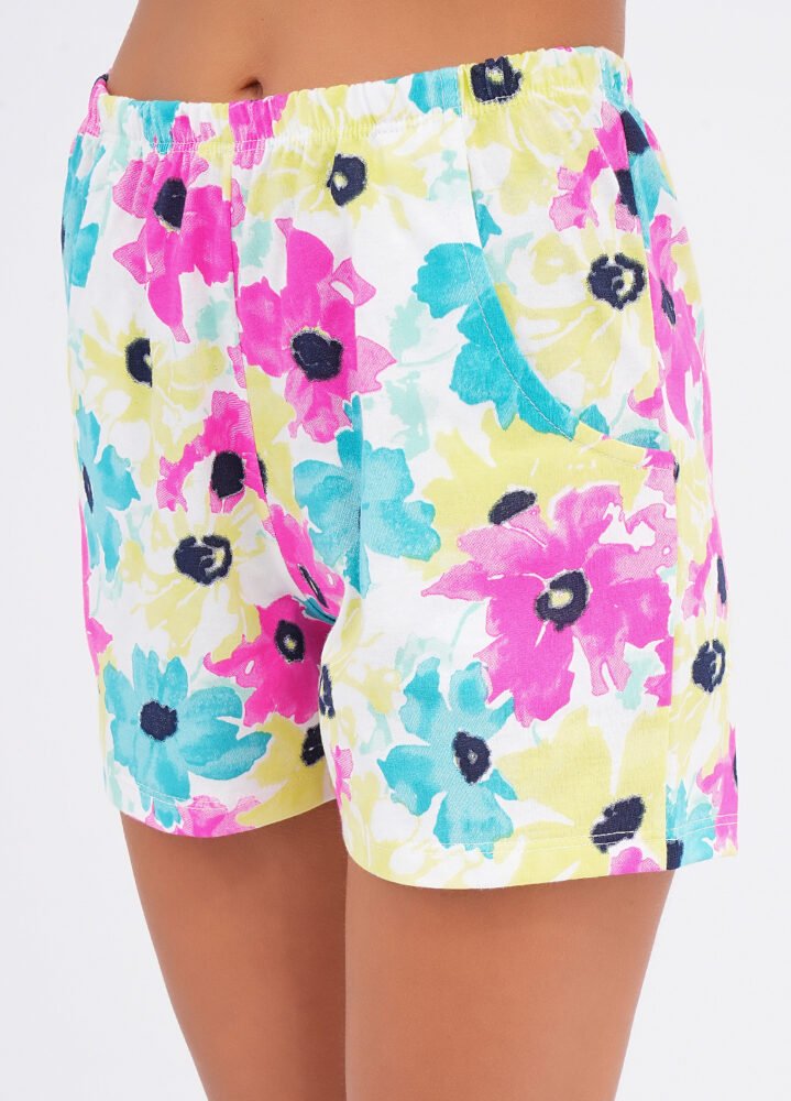 Оновіть свій домашній стиль з цією чудовою піжамою, що поєднує в собі витонченість та максимальний комфорт. Комплект складається з футболки з віскози та шортів з 100% бавовни, кожна частина виготовлена з увагою до якості та зручності.