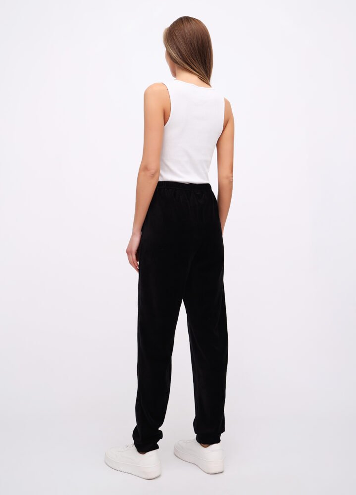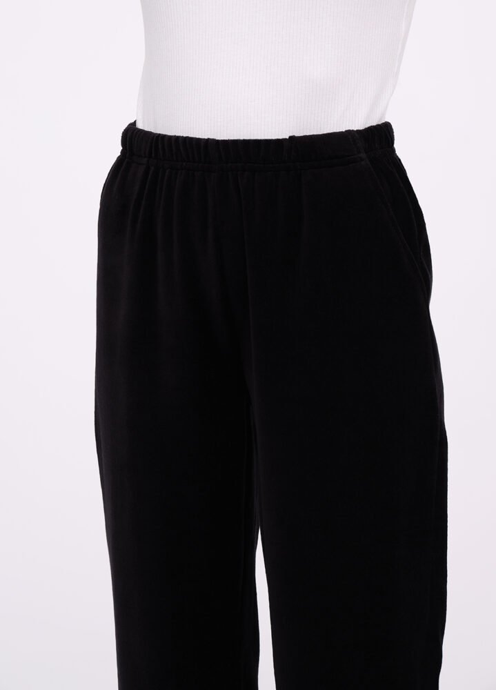 Штани жіночі велюрові. Штани з еластичним поясом на резинці. На розмір 52 довжина внутрішнього шва: 74 см, ширина по низу виробу (напівобхват): 15 см.