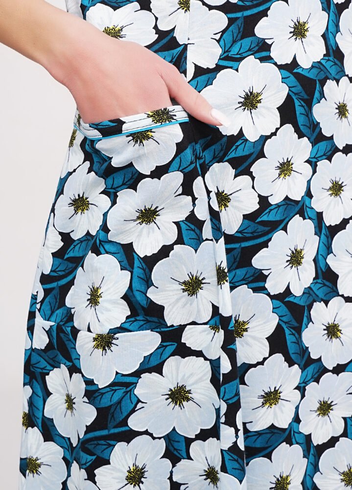 Легка бавовняна сукня створена для комфорту та легкості у повсякденному житті. Тканина приємна до тіла, дихає та ідеально підходить для теплої пори року. Вільний крій забезпечує свободу рухів, а ніжний рослинний принт додає образу свіжості та жіночності.Акуратні деталі та зручні кишені роблять модель не тільки красивою, а й практичною.