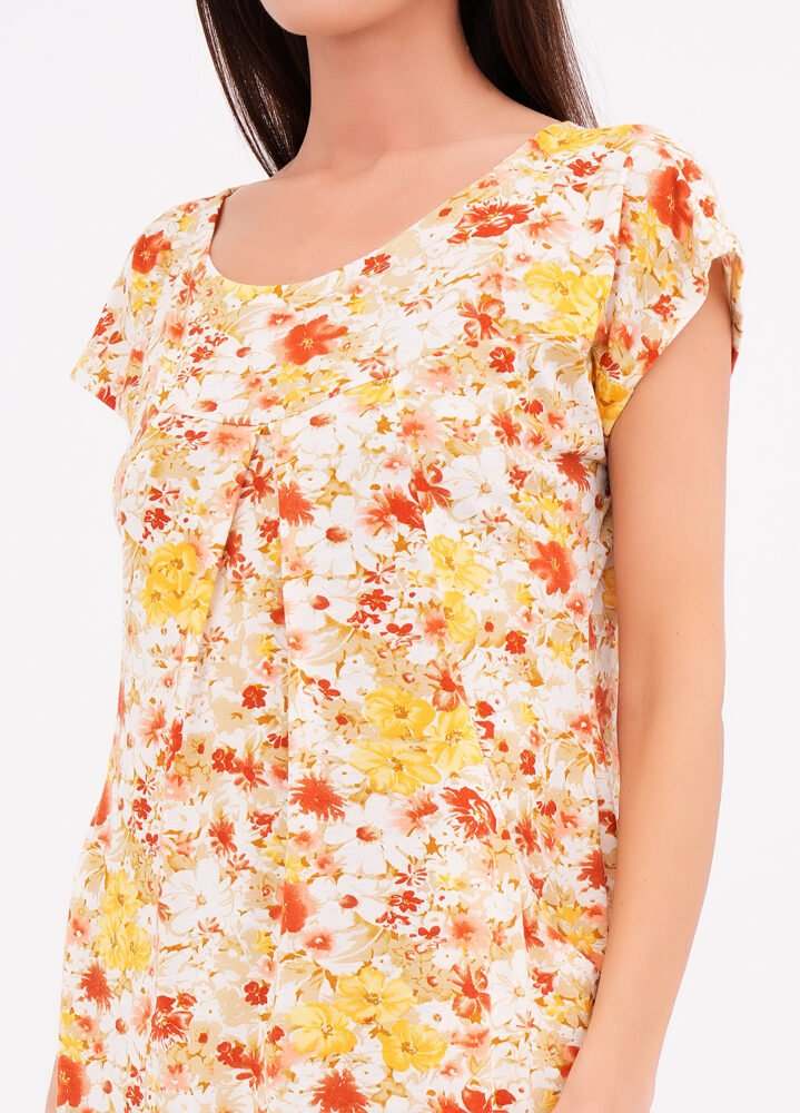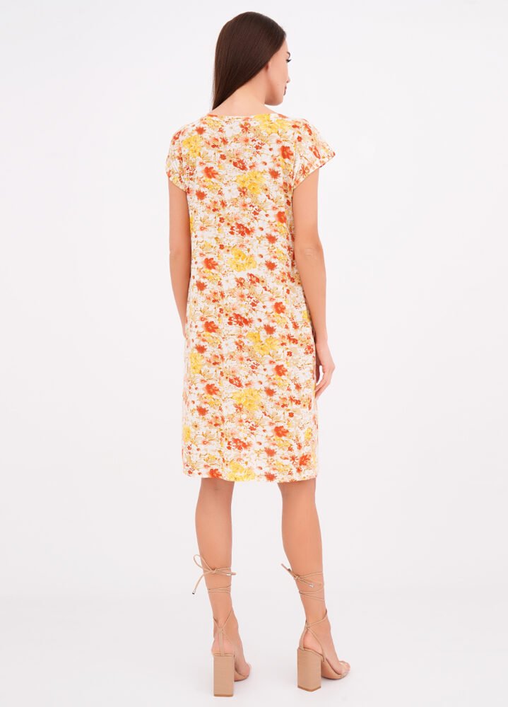 Легка та жіночна сукня прямого крою з яскравим квітковим візерунком – ідеальний вибір для літа. М’яка тканина з віскози забезпечує приємні тактильні відчуття, а невелика домішка еластану гарантує комфорт та свободу рухів.
