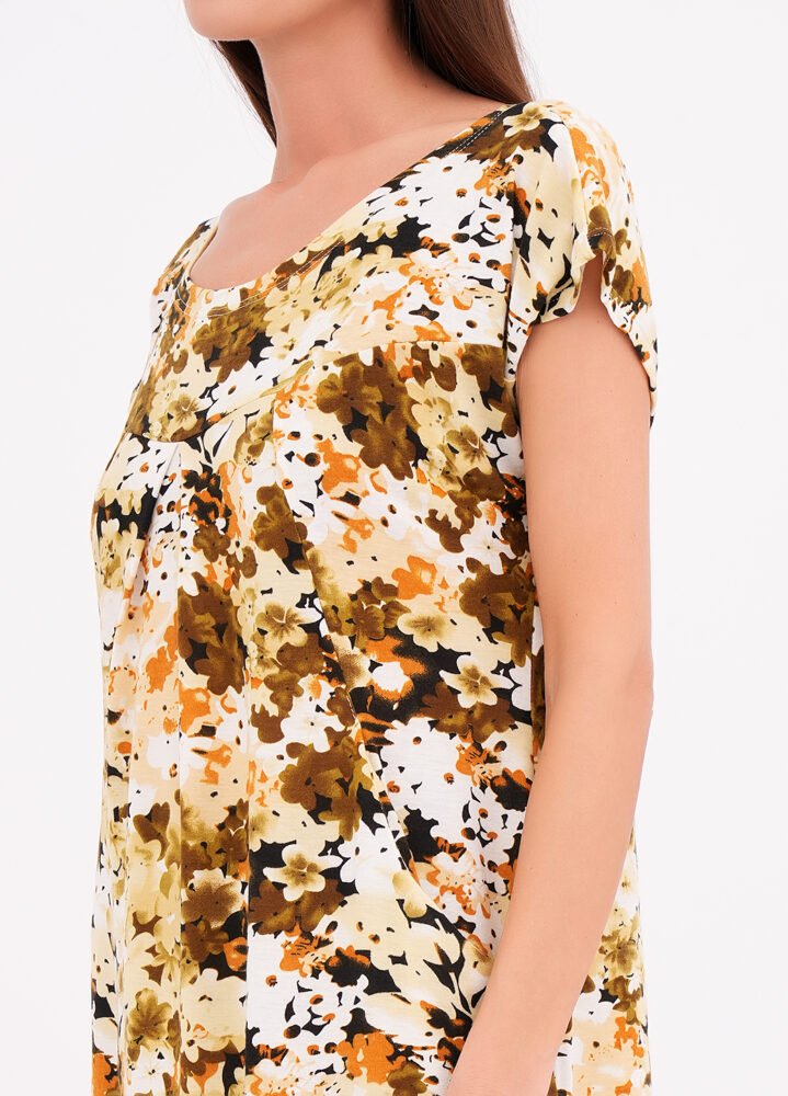 Легка та жіночна сукня прямого крою з яскравим квітковим візерунком – ідеальний вибір для літа. М’яка тканина з віскози забезпечує приємні тактильні відчуття, а невелика домішка еластану гарантує комфорт та свободу рухів.